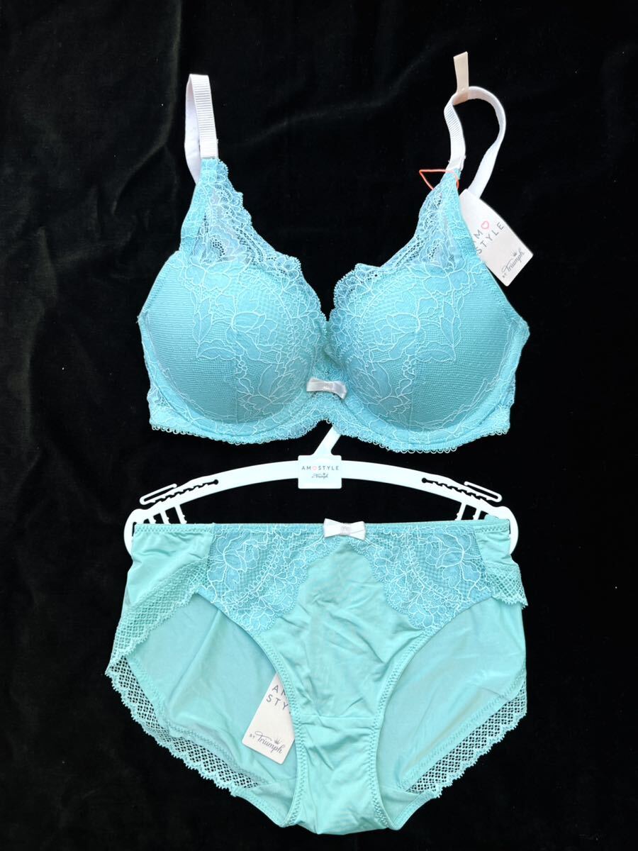 - 新品トリンプ アモスタイル ★大人気!8,239円 D70&ショーツ Mセット ミント×バラレース AMOSTYLE