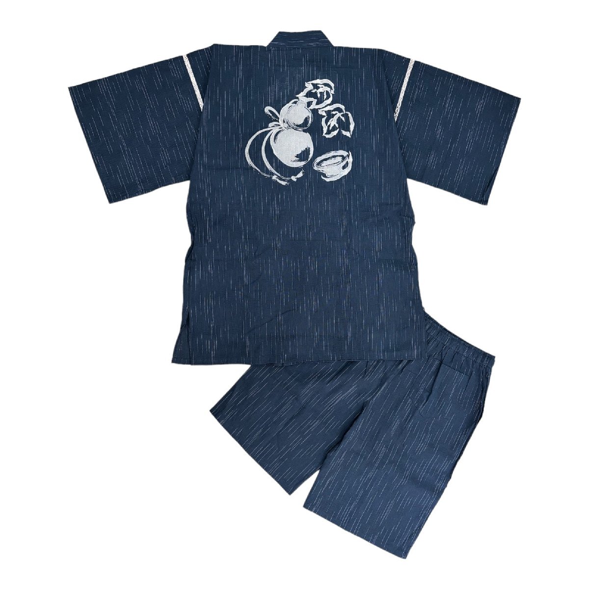 - [江戸てん]訳あり半額 甚平 しじら織り 涼しい 綿100% 抜染 メンズ ひょうたん 黒 L