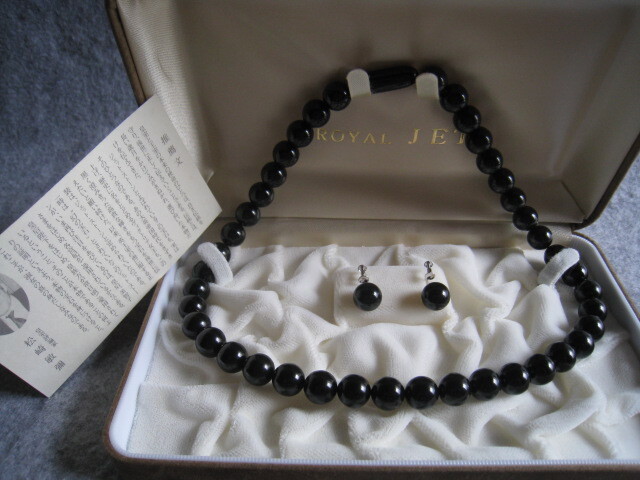 - [SAMU]極品!!最高級天然ジェット珠10mm ネックレス&k14WGイヤリング★ケース、保証カード!