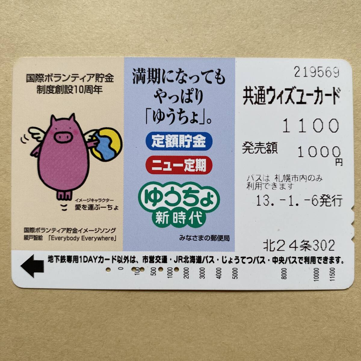 - 【使用済】 ウィズユーカード 札幌市交通局 国際ボランティア貯金制度創設10周年 イメージキャラクター 愛を運ぶーちょ