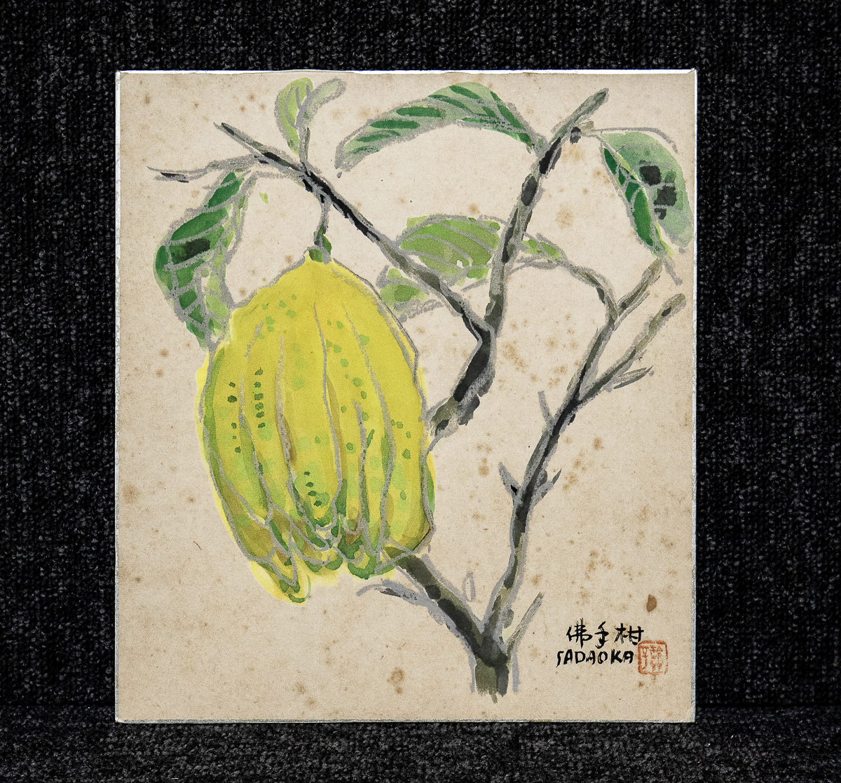- 色紙ー1215 定岡玲艸子 仏手柑 愛媛新居浜 洋画家【真作】