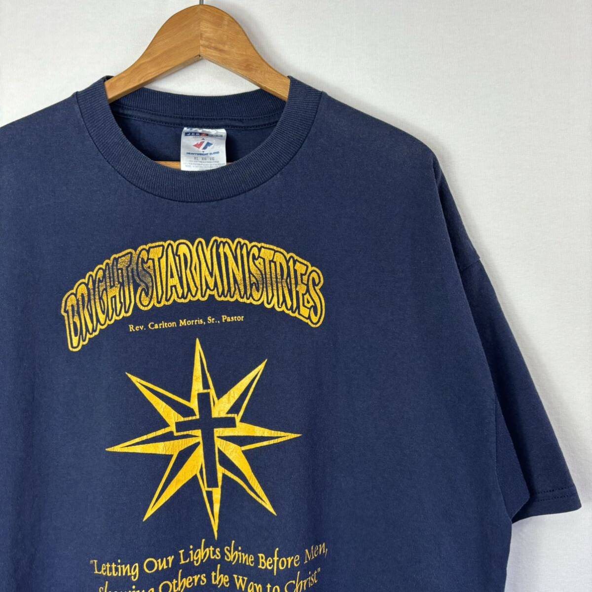 > ヴィンテージ 00s【十字架】JERZEES 古着 Tシャツ XL アメカジ ナス紺 紺黄 企業 レア オールド タトゥー 教会 キリスト 90s Y2K HANES
