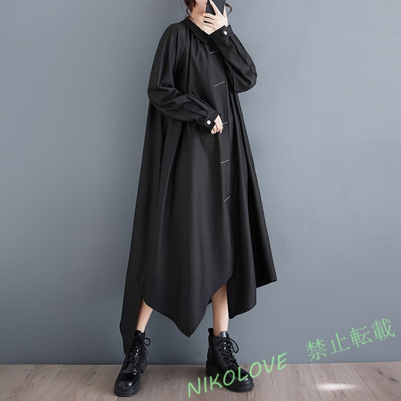 - 新品ゆったり大きいサイズ カジュアル おしゃれ不規則マキシロングワンピース 黒 LE841