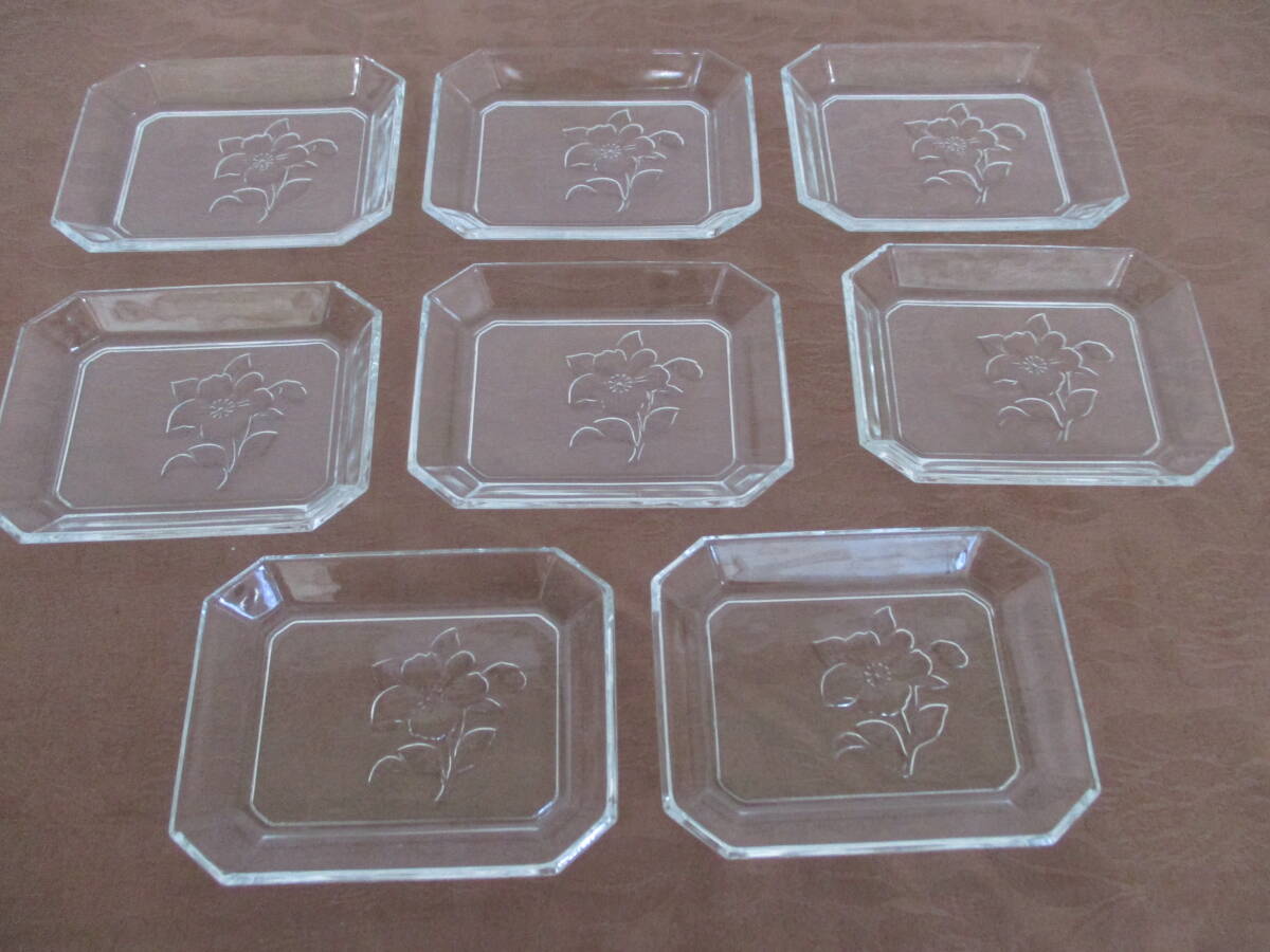 - ガラスの小皿 8枚 涼しげ 高さ2㎝ 10×13cm ※少々汚れキズあり tm2406-4-5