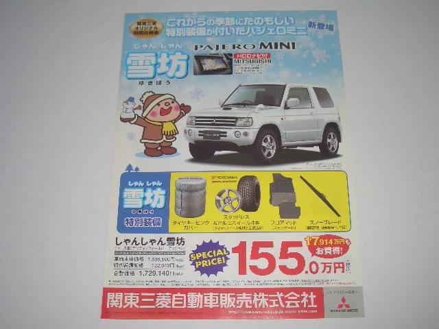 - 三菱 パジェロミニ 関東三菱オリジナル 特別仕様 雪坊 カタログ 年代 ? リーフ
