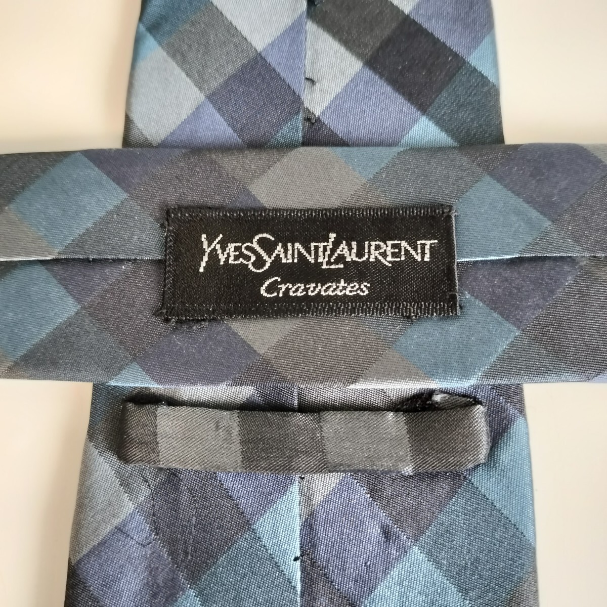 - イヴサンローラン(YVES SAINT LAURENT)黒紺水色灰色チェックネクタイ