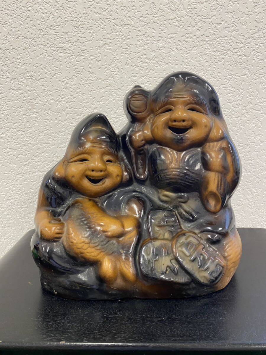 - 置物 縁起物 七福神 陶器 時代物 貯金箱 No.560