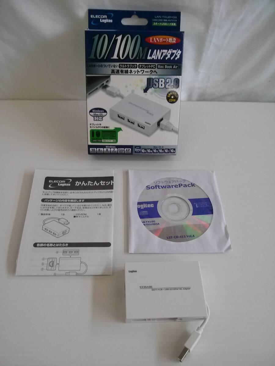 - 【TN-1026】 中古 エレコムロジック 10/100M LANアダプタ LAN‐TXU2H3A 3ポートUSBハブ搭載【傷、汚れあり】(KH)