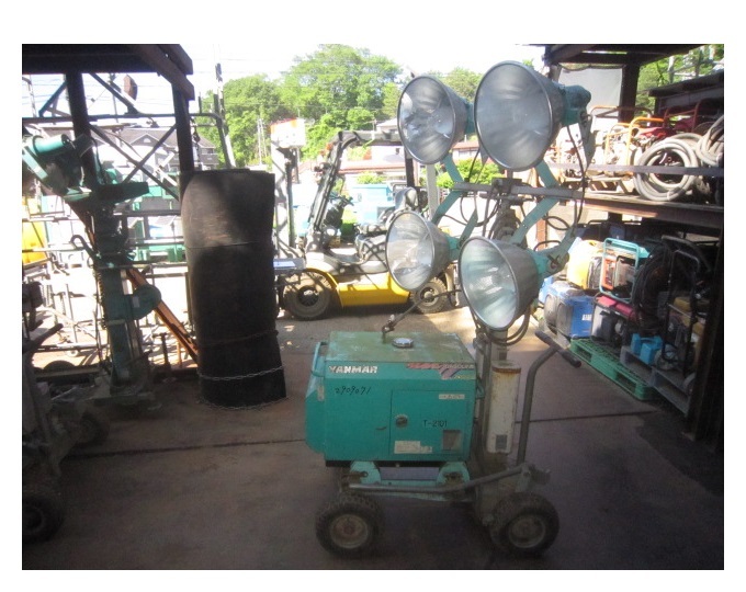 > C2A【石2909071有】4灯式投光機 グリーンサービス LB440 発電機 ヤンマー YSG3000SS ガソリン 2.5KVA 100V 50Hz 安定器×2