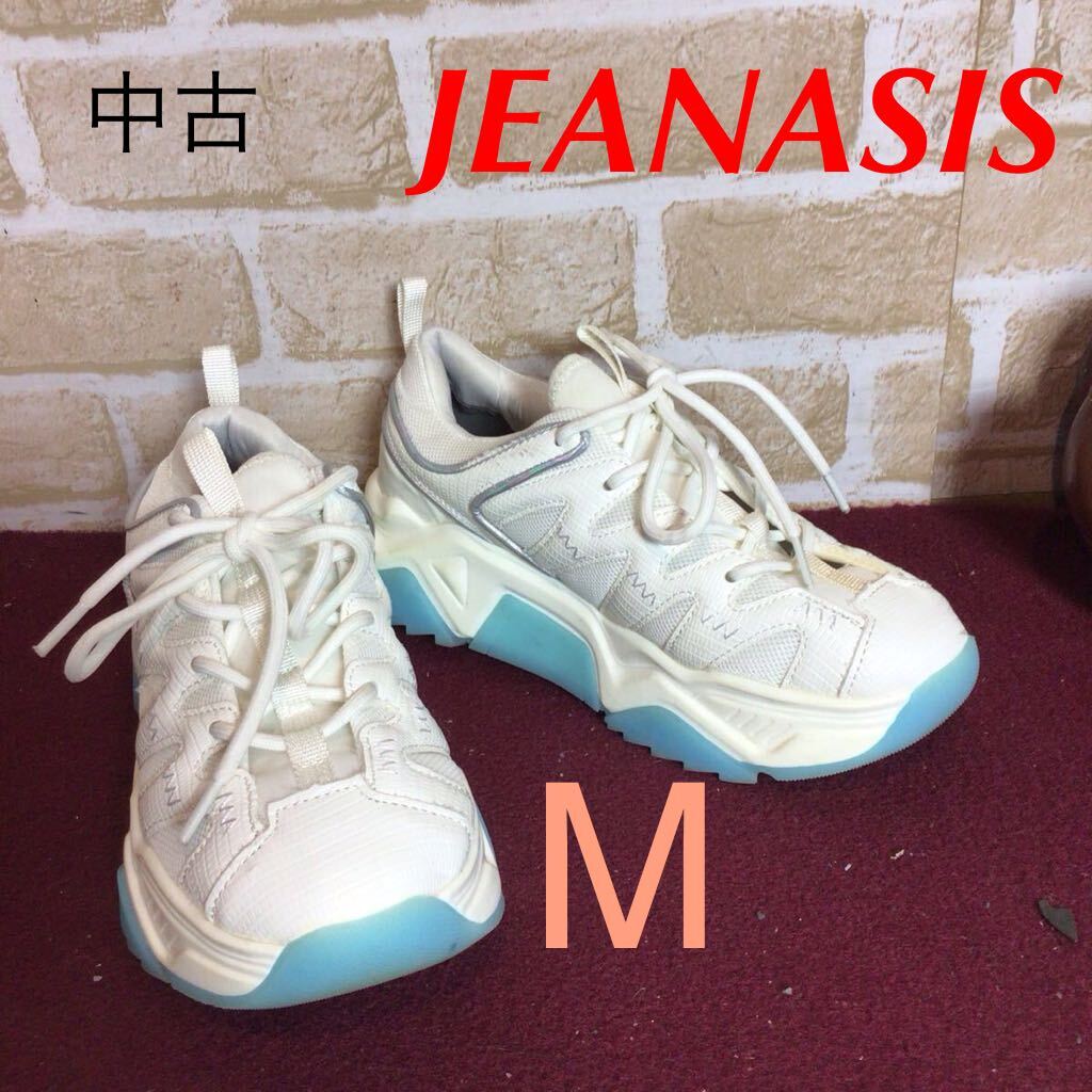 > 【売り切り!送料無料!】A-378 JEANASIS!厚底スニーカー!Mサイズ!白!ブルー!厚底!約5cmヒール!前厚4.0cm位!おしゃれ!中古!