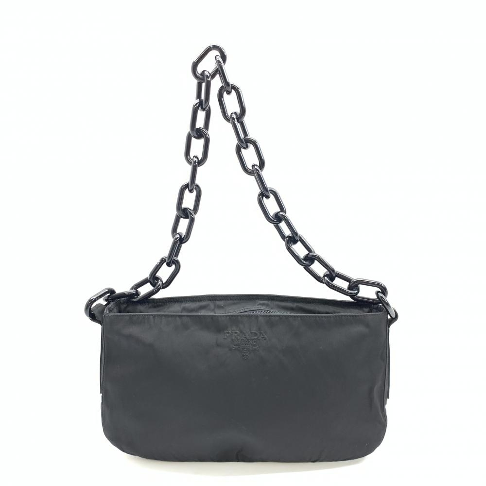 > PRADAB プラダ 6701 ショルダーバッグ ハンドバッグ ナイロン ブラック ファスナー開閉 刺繍ロゴ レディース シンプル 管理HS37972