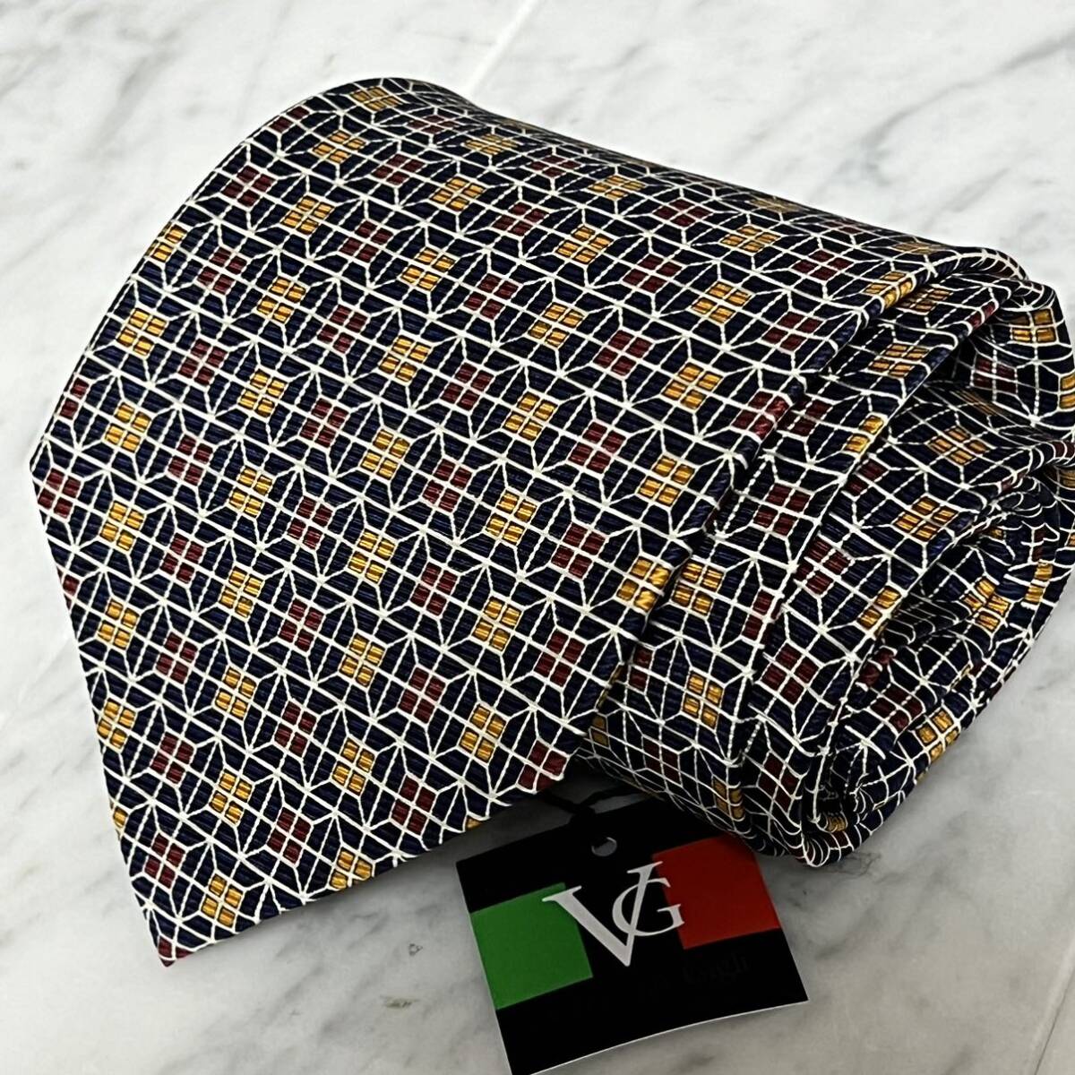 - 【新品タグ付き】 770円~ ネクタイ ネイビー レッド イエロー ホワイト 小紋 幾何学模様 (B3)
