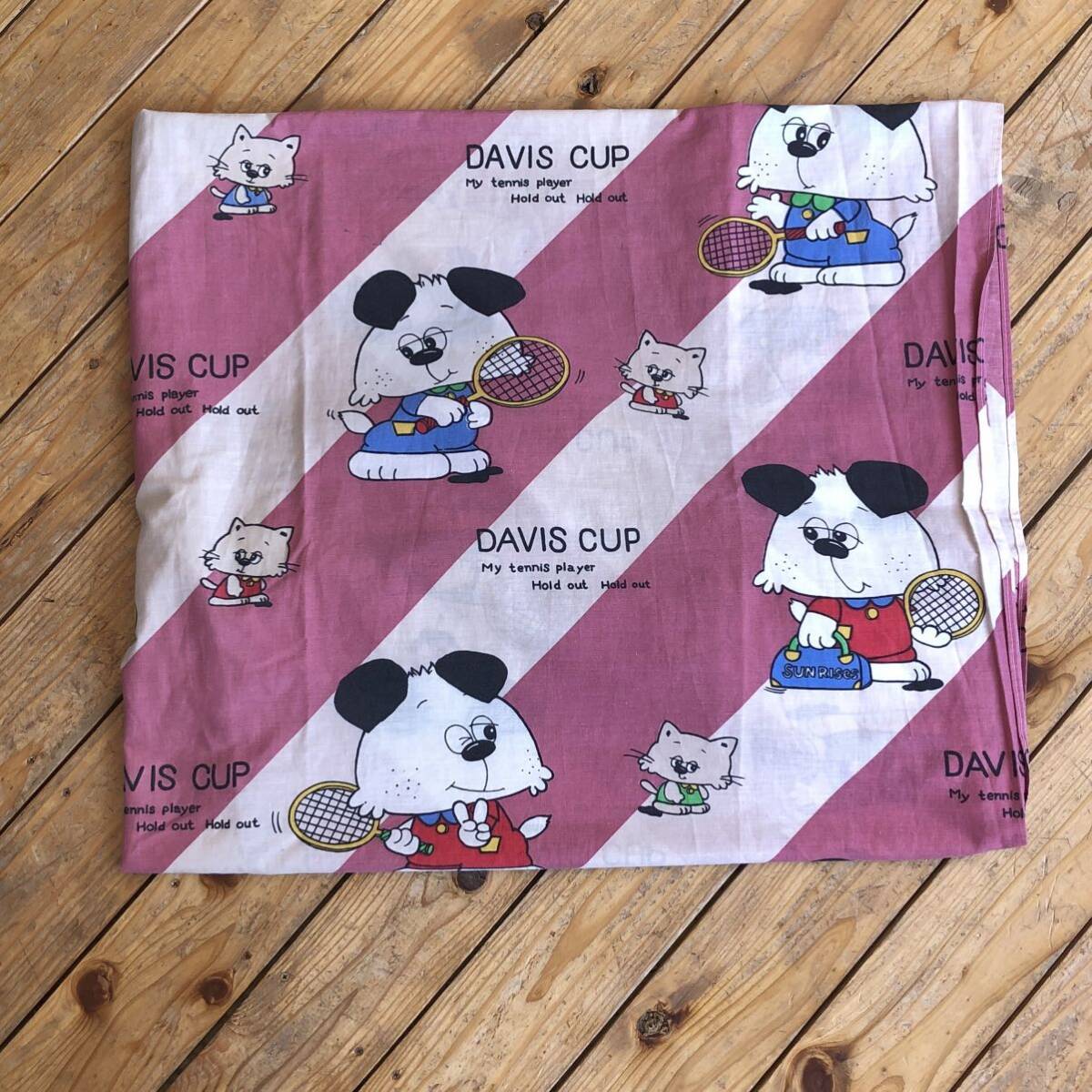 - USAヴィンテージ アニマル柄 ベッドシーツ リメイク生地 素材 ボックスシーツ テニス オールド レトロ ポップ 猫 アメリカ仕入 B2269
