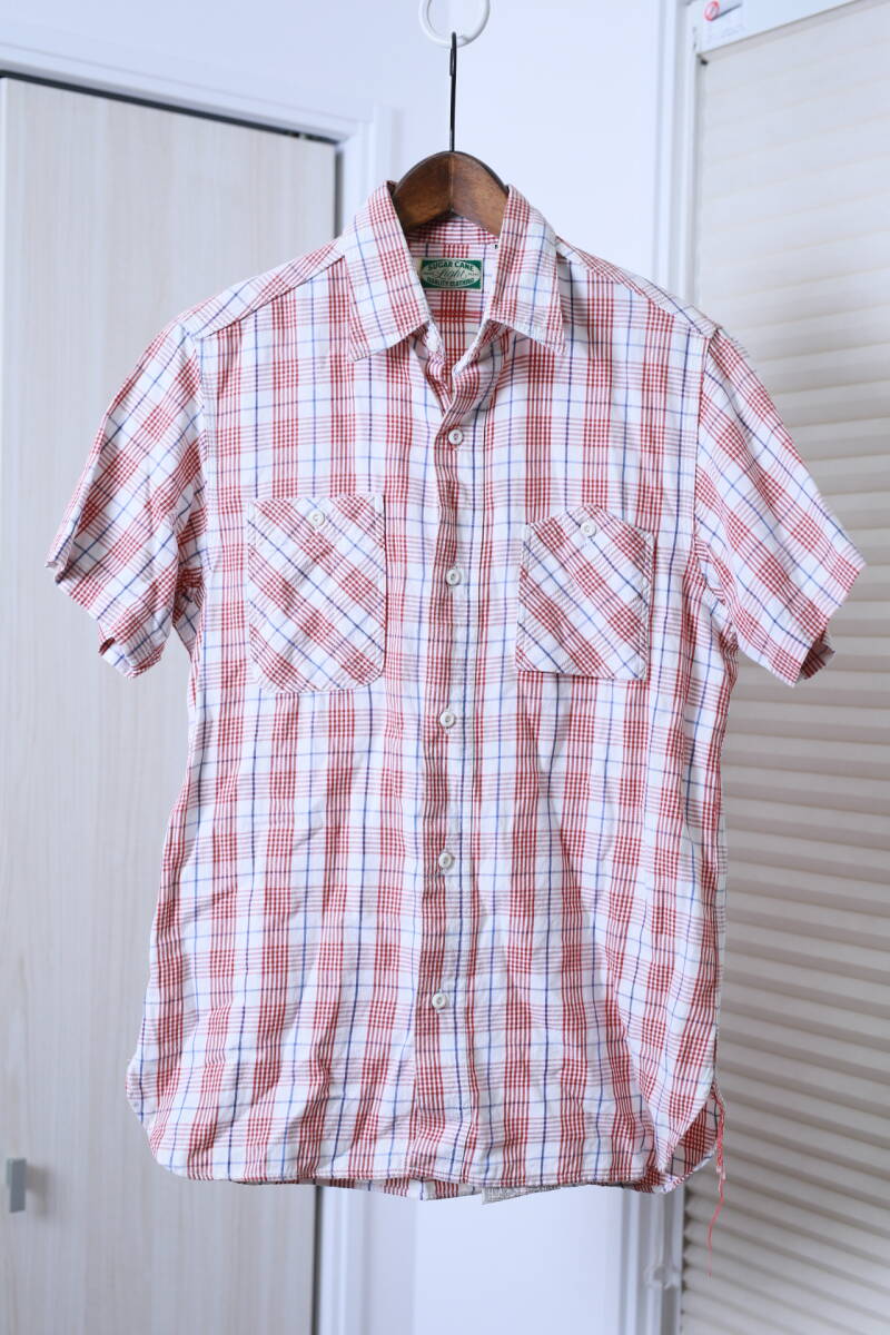 > ★SUGAR CANE シュガーケーン 東洋エンタープライズ イレギュラーポケット 空環仕上げチェック柄半袖シャ 古着ユーズド男性メンズ服M赤白