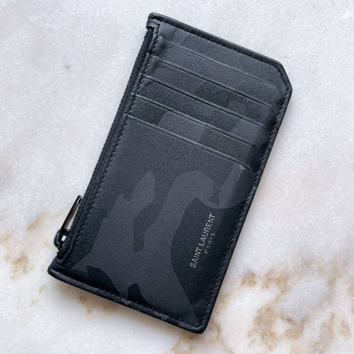 - Yves Saint Laurent イブサンローラン レザーコインケース 黒 フラグメントケース ブラックカモフラ 迷彩柄