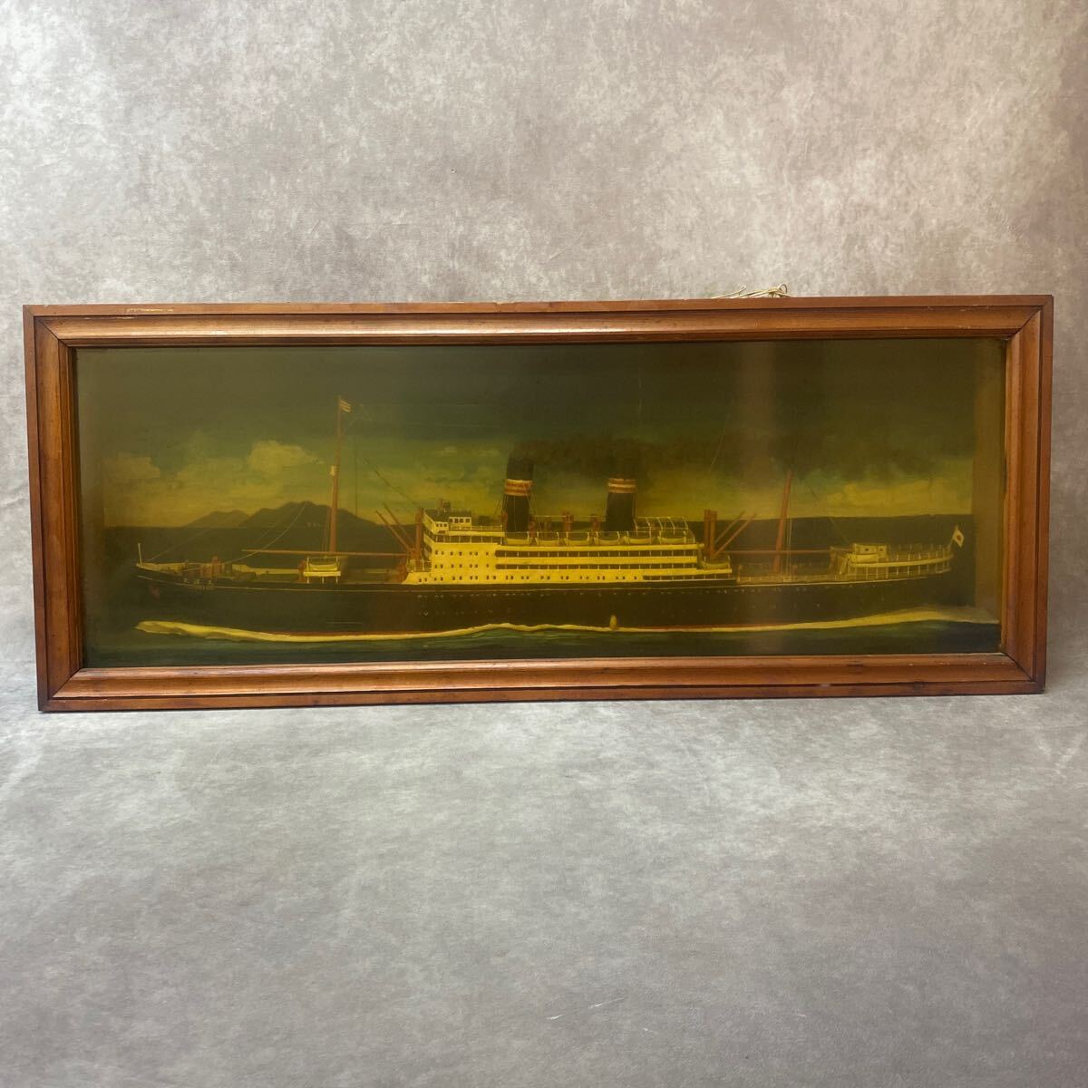- 現状品 大型船模型 大洋丸 木枠ガラスケース 約40×95×15cm 完成品 船 飾り 置物 いんてインテリア 骨董 コレクション オブジェ