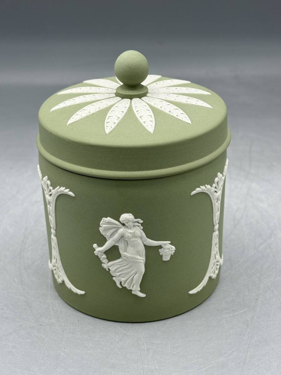 > ウェッジウッド セージ グリーン ジャスパー ダンシングアワー 小物入れ 蓋付 (13) ジャスパーウェア