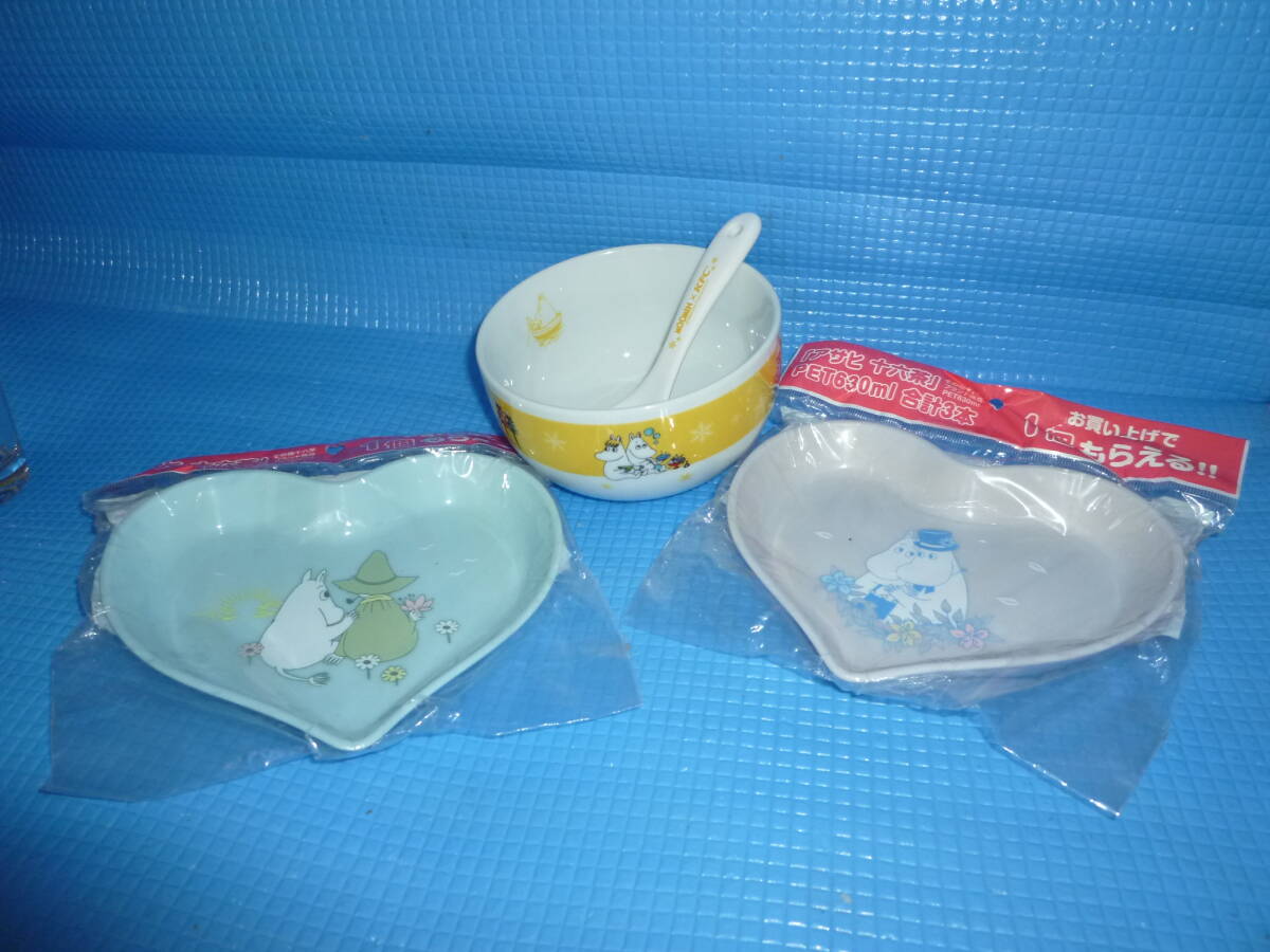 - b非売品★未使用★2016年 クリスマス限定 KFC×MOOMINムーミン ボウル&スプーンと2019年アサヒ16茶×ムーミンハート型プレート2種