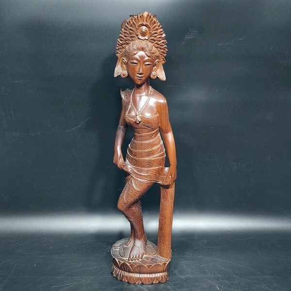 - M64 木製置物 バリ製 彫刻 女性像 一部欠けあり 60㎝
