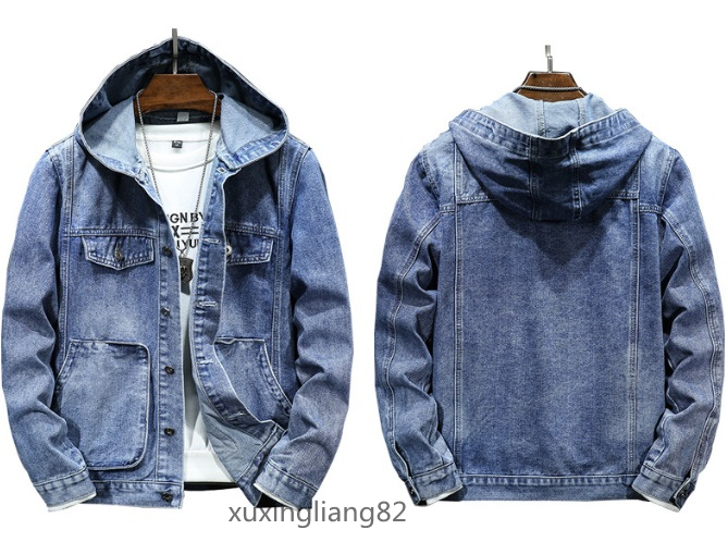 - 新販売 デニムジャケット ジージャン バイクジャケット メンズ 作業服 アウター カジュアル パーカー フード付き ブルー/L