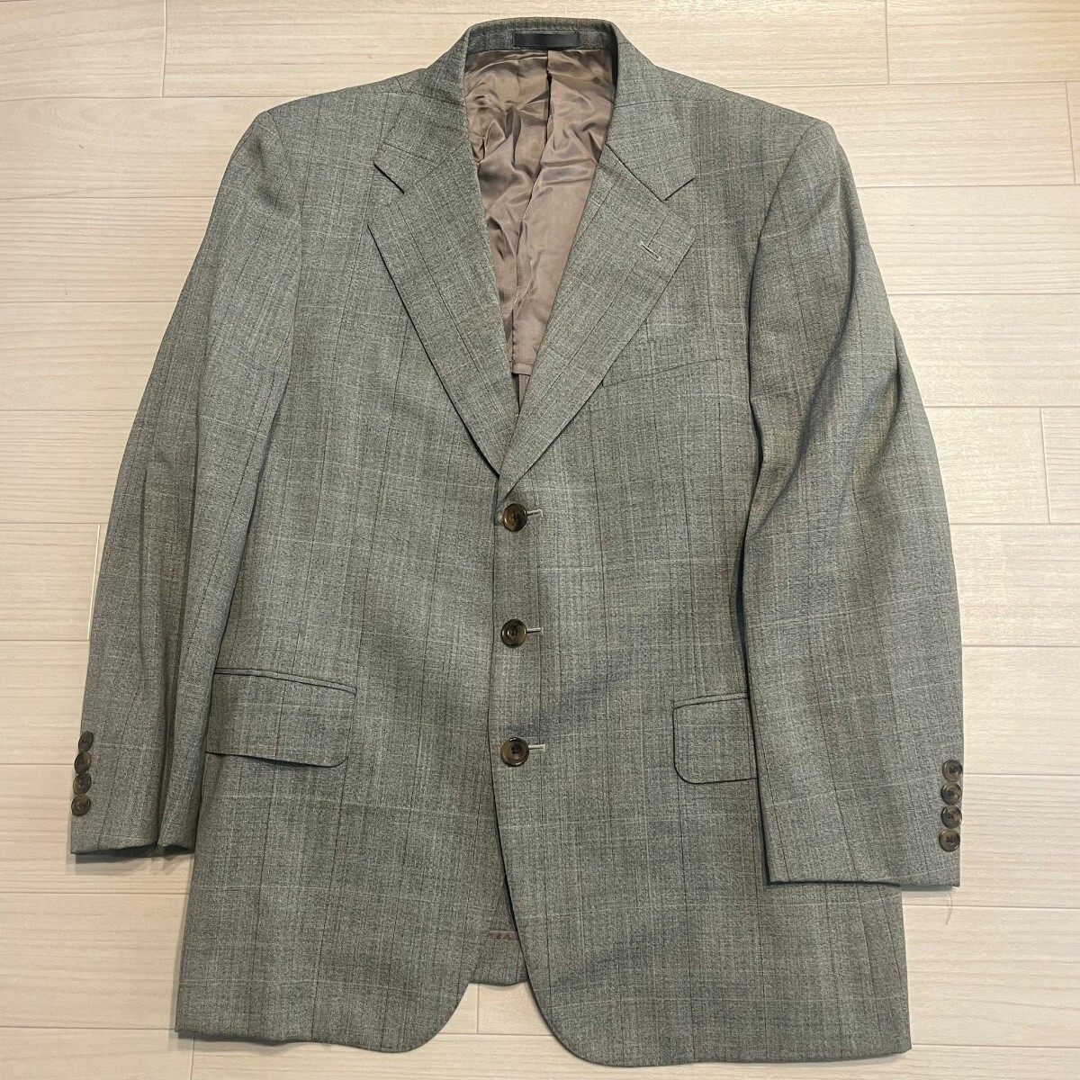 - Burberry's バーバリー 毛100% テーラードジャケット チェック柄 3つボタン ウール混 アルパカ混 グレー