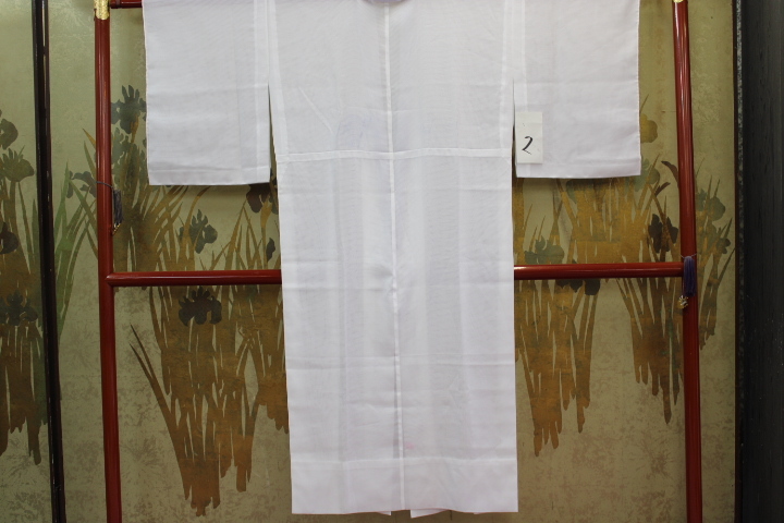 - きもの今昔7236 長襦袢 夏用単衣長襦袢 白絽のポリエステル100% 後身の裾にピンク色シミ有り 身丈130cm