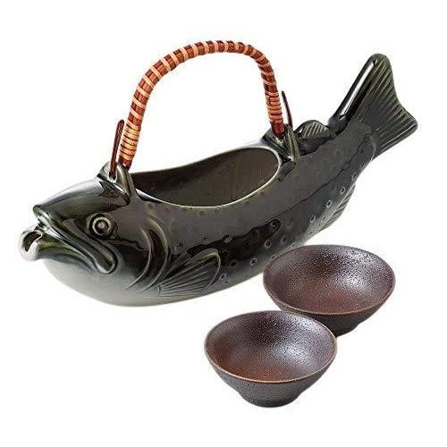 > 美濃焼! ☆風雅岩魚骨酒(大)☆ V4050-2 新品 ぐい呑 サカズキ 杯 盃 徳利 酒注ぎ 片口酒器 ギフト