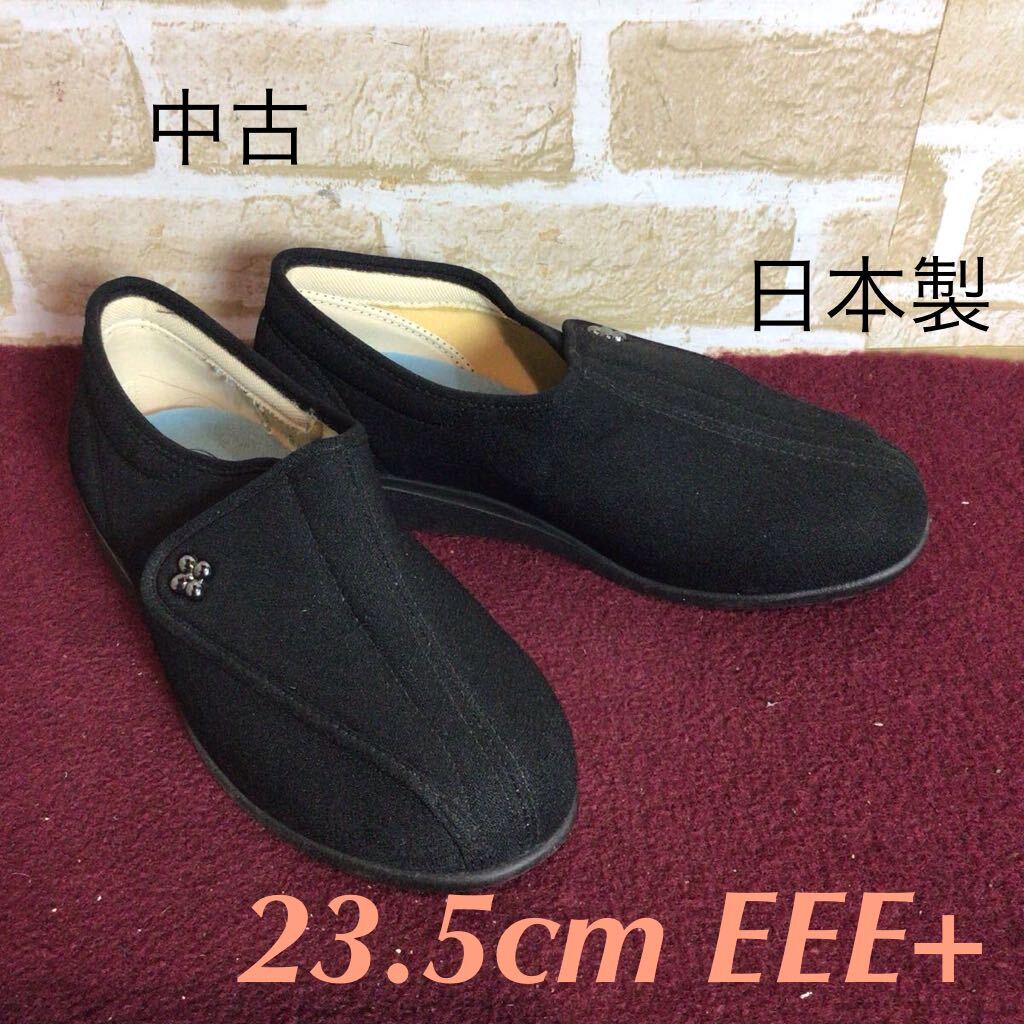 - 【売り切り!送料無料!】A-379 面ファスナースリッポン!23.5cm EEE+!黒!ブラック!介護!介護用シューズ!履かせやすい!中古!