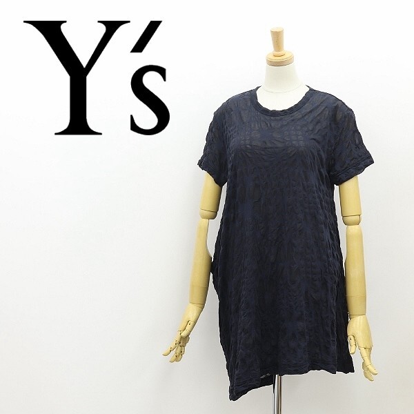 > ◆Y's ワイズ ヨウジヤマモト オパール加工 水玉柄 コットン 変形 ワンピース 紺 ネイビー×ブラック 2