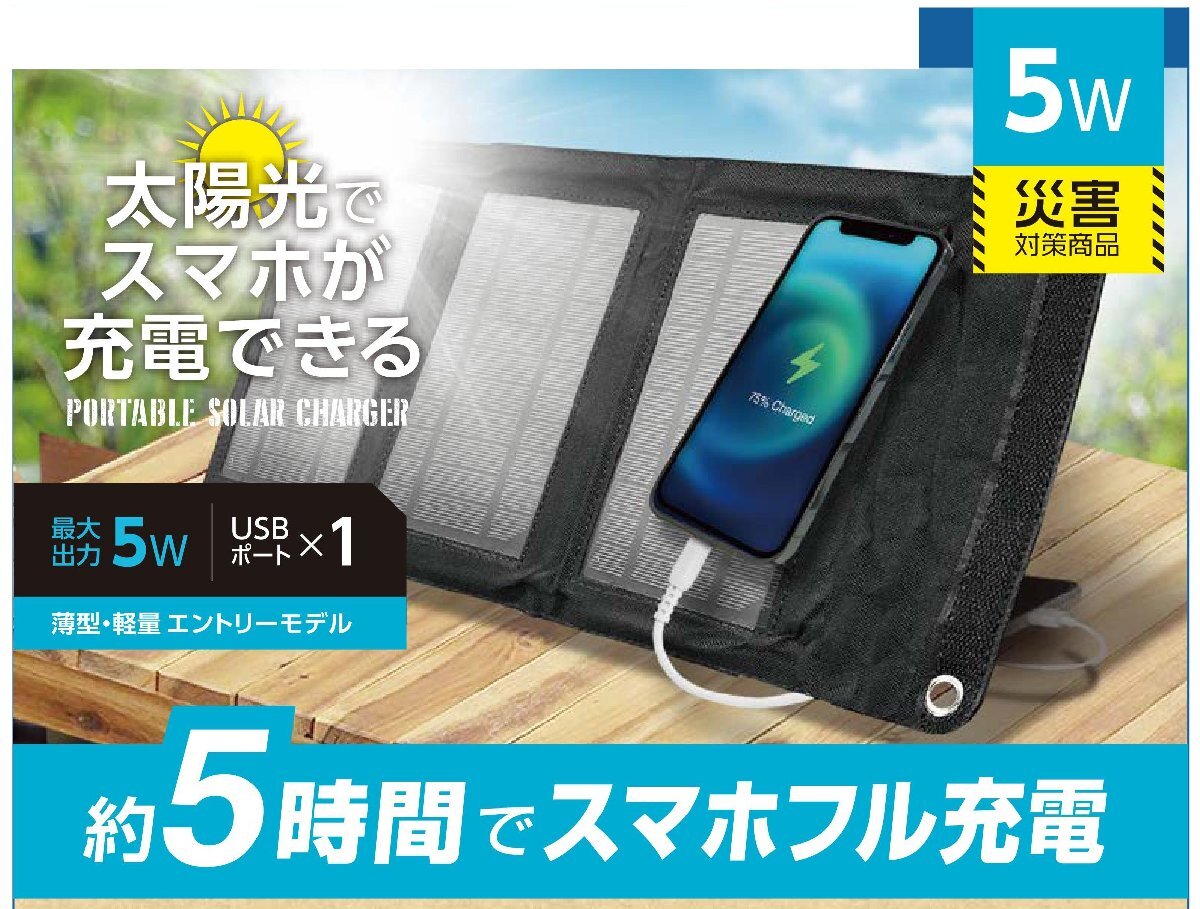 - ポータブルソーラー充電器5W・AJ-NSOLAR5W BK