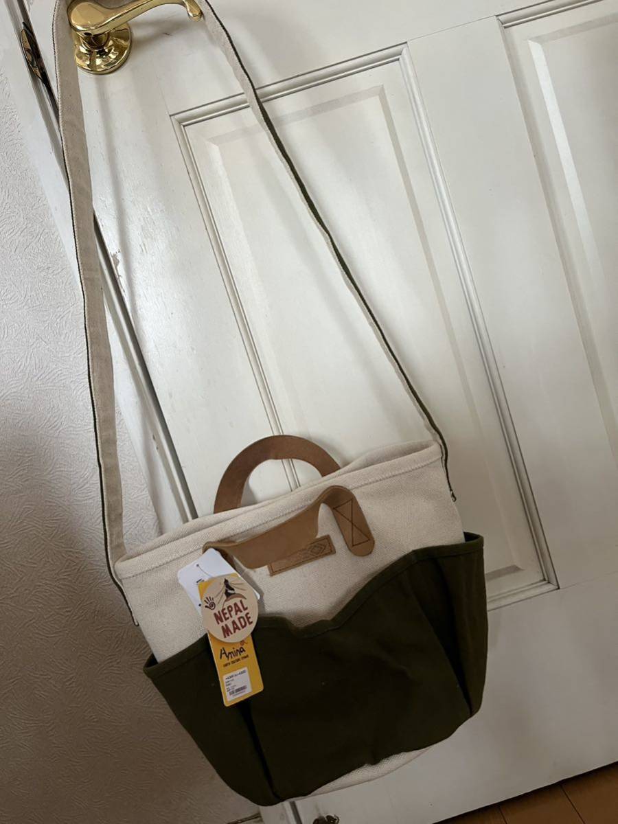 - 新品 定価4,620円 Amina チャイハネ コットンキャンバス 2WAYショルダーバッグ トートBag アウトドア大活躍 縦24cm 横23cm マチ19cm