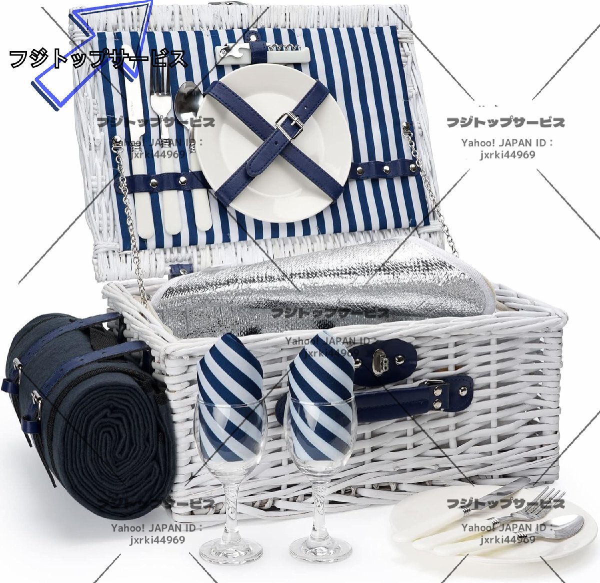 - ピクニックバスケットセット 4人用 断熱層付き 防水ピクニックブランケット 家族/パーティー/アウトドア/キャンプ用食器