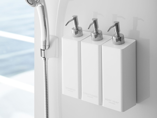 - マグネット付き 詰め替えボトル 3本セット 白 ディスペンサー 磁石 ボディソープ シャンプー コンディショナー 各1個 山崎実業 タワー