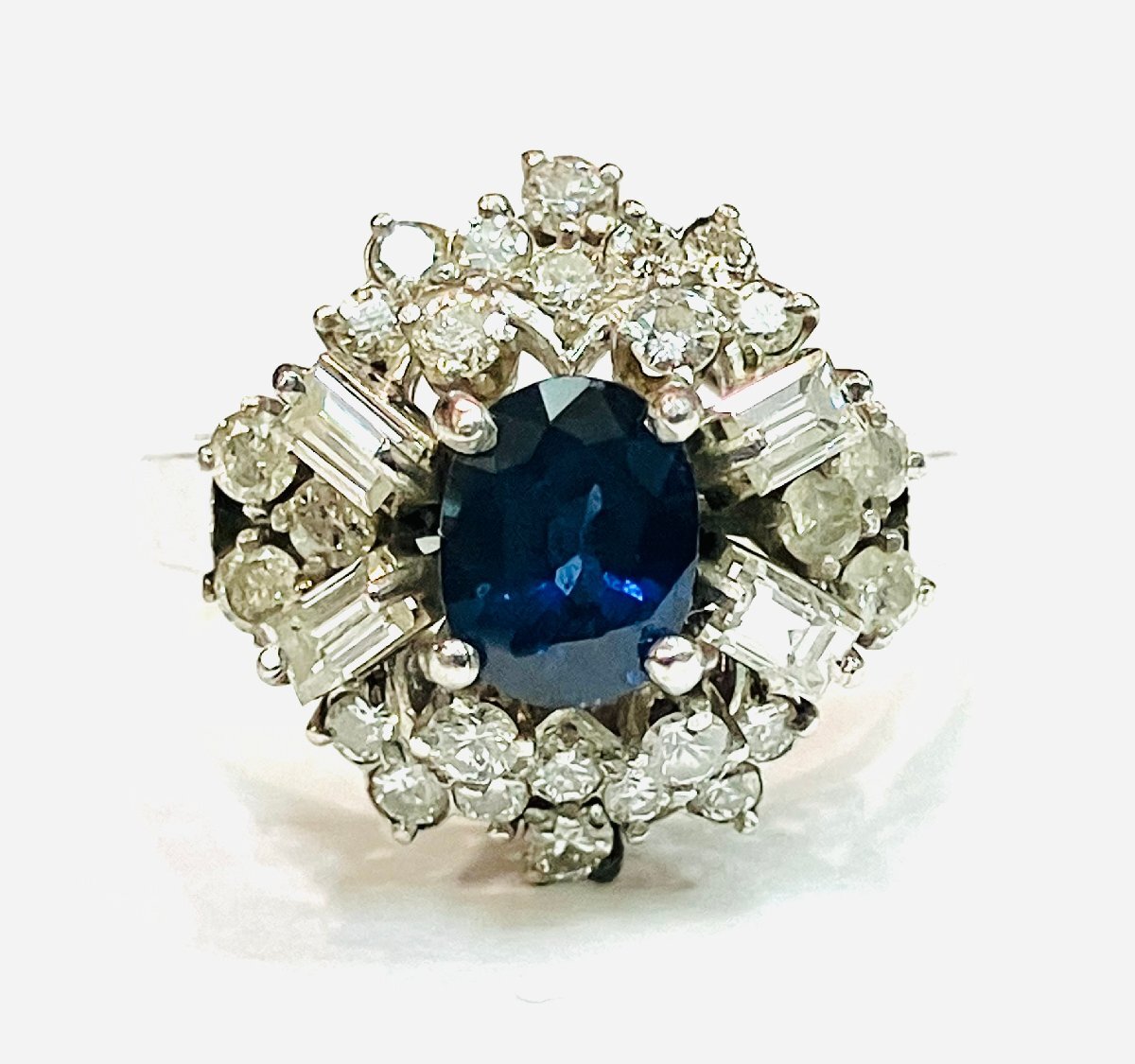 - qoj.Z3219 PT900 プラチナ ブルーサファイヤ ダイヤモンドリング 中石0.87ct/枠石0.84ct 10号