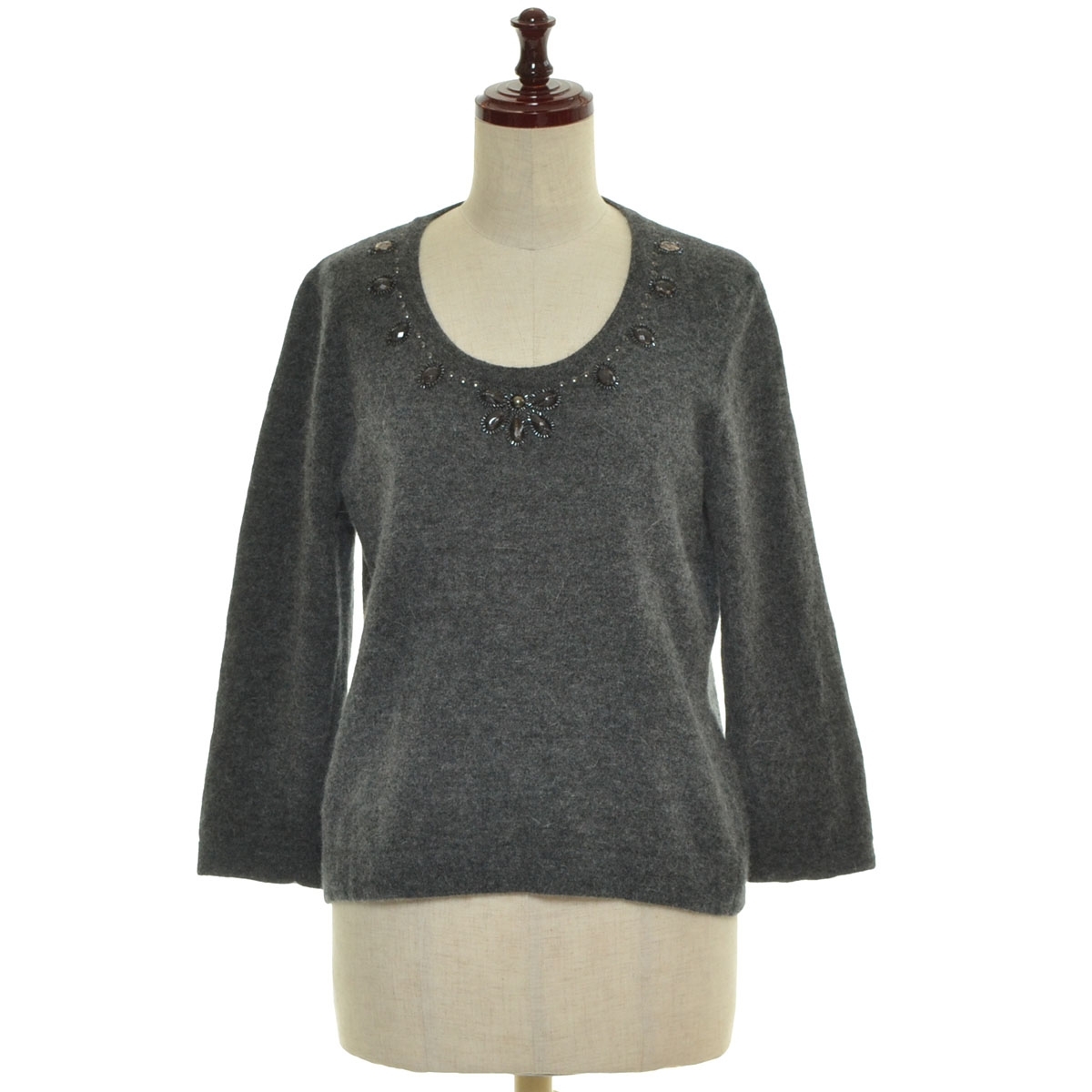 > □497700 LAURA ASHLEY ローラアシュレイ ○セーター ビジュー装飾ウールアンゴラニットPO サイズL レディース グレー