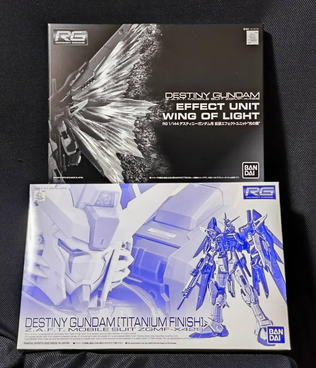 - 未組立2点セット バンダイ RG 1/144 デスティニーガンダム[チタニウムフィニッシュ]+ 拡張エフェクトユニット“光の翼” プレバン限定