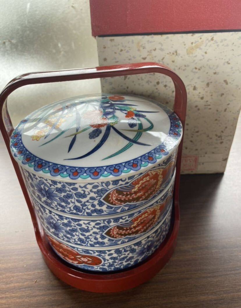 - 【送料無料】三段重 陶器 柴田陶器 直径12cm、高さ12cm 未使用品