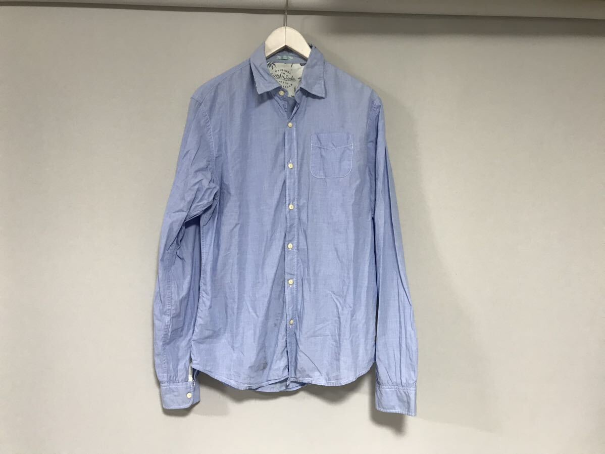 > 本物スコッチアンドソーダSCOTH&SODAコットン長袖シャツメンズサーフアメカジミリタリーワークビジネススーツ青ブルーM