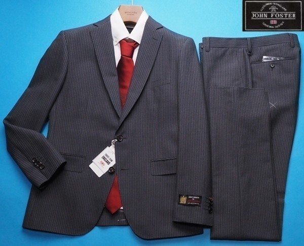 - 新品8.6万円 大手百貨店扱い 春夏『ジョンフォスター 英国製生地』モヘヤ混ウール ストライプ スーツYA7灰(H) 1511051 水牛釦