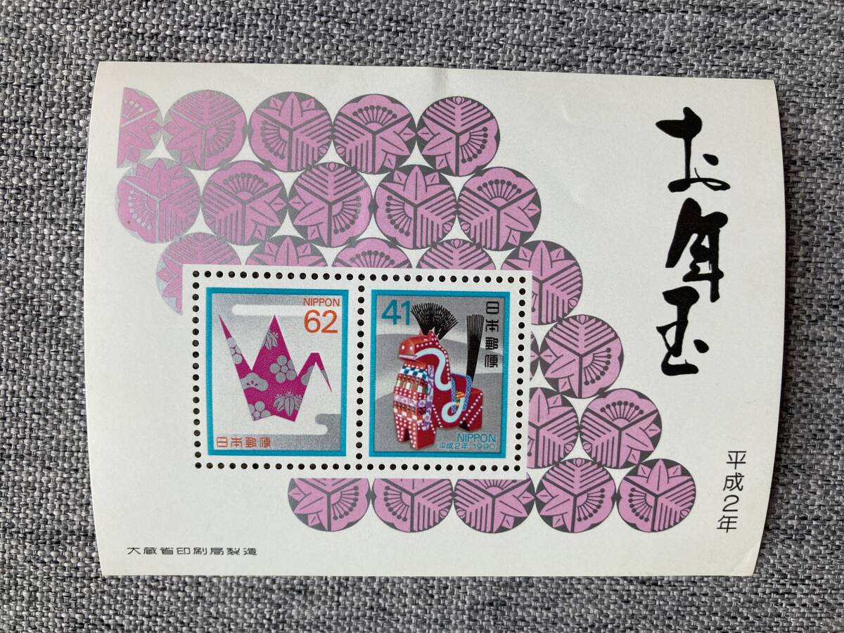 - ★未使用 お年玉 郵便切手 切手シート 年賀はがき当選 平成2年 1990年 八幡馬 折り鶴 うま 午年 41円 62円 ミニレター
