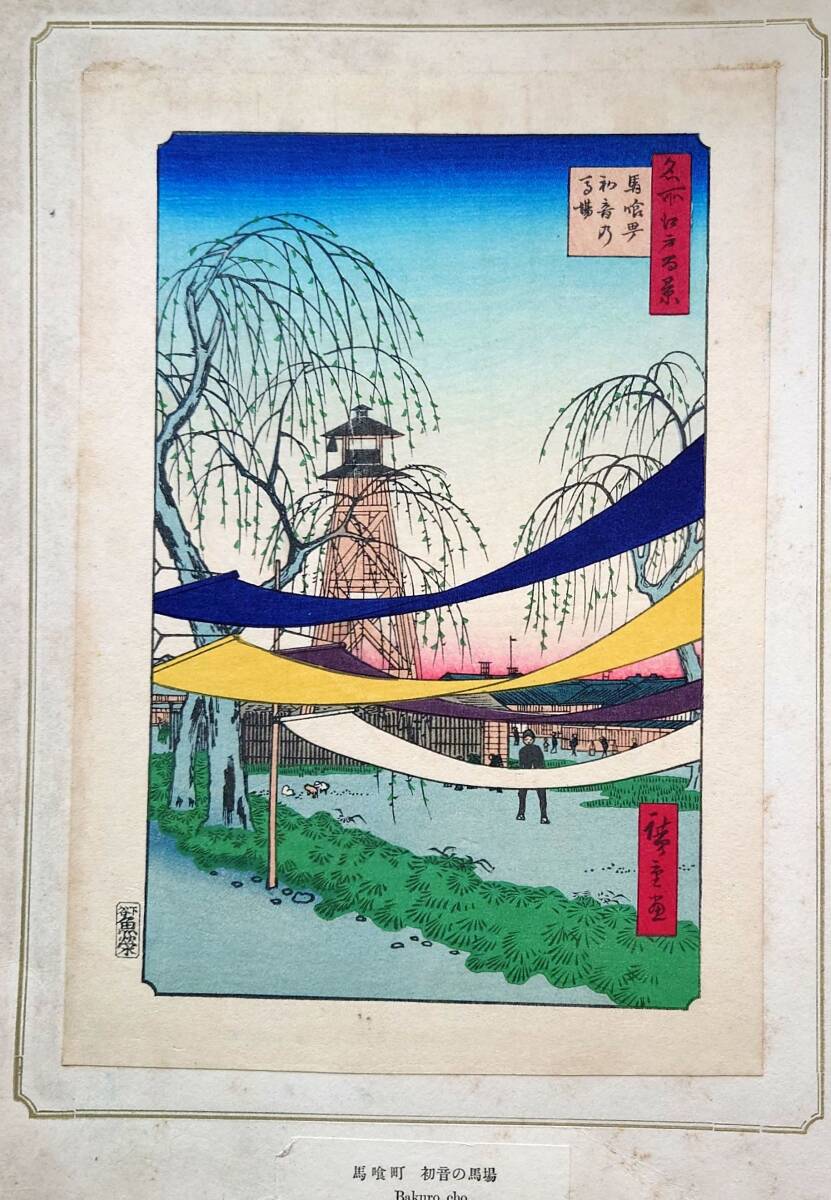 - f24080006〇名所江戸百景 彩色木版画 浮世絵 歌川広重 馬喰町初音の馬場 複刻昭和年代〇和本古書古文書