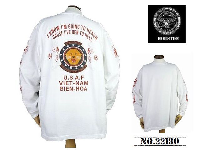 > 【送料無料 38%OFF】HOUSTON ヒューストン ミリタリー プリント長袖Tシャツ 「DRAGON」 NO.22180 WHITE_Lサイズ