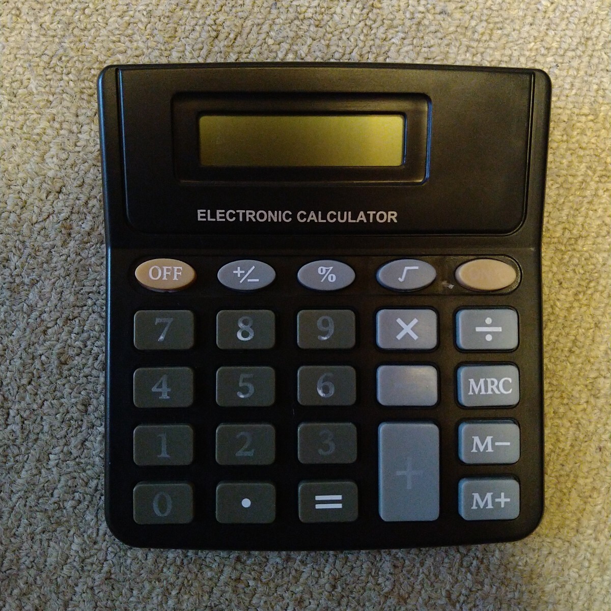 - 電卓8桁 動作確認済み 操作ボタン色褪せや色落ち有ります 裏面ダメージ有り オン・オフのスイッチ有り 電池交換時期不明