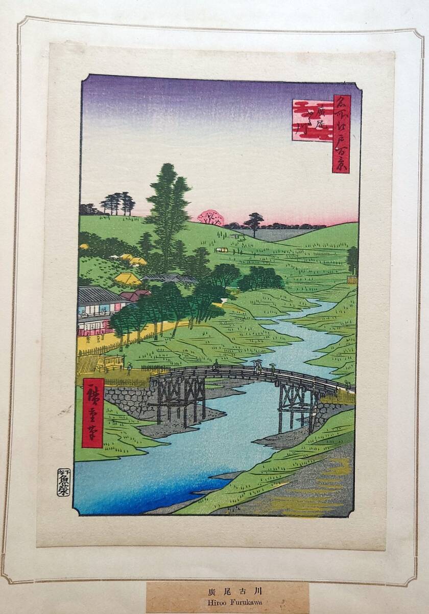 - f24080022〇名所江戸百景 彩色木版画 浮世絵 歌川広重 廣尾ふる川 複刻昭和年代〇和本古書古文書
