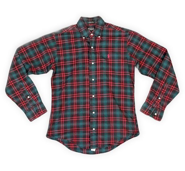 > 90's 米国製 MADE IN USA ラルフローレン Polo Ralph Lauren ボタンダウン チェック シャツ ボーイズ16 [ta-1156]