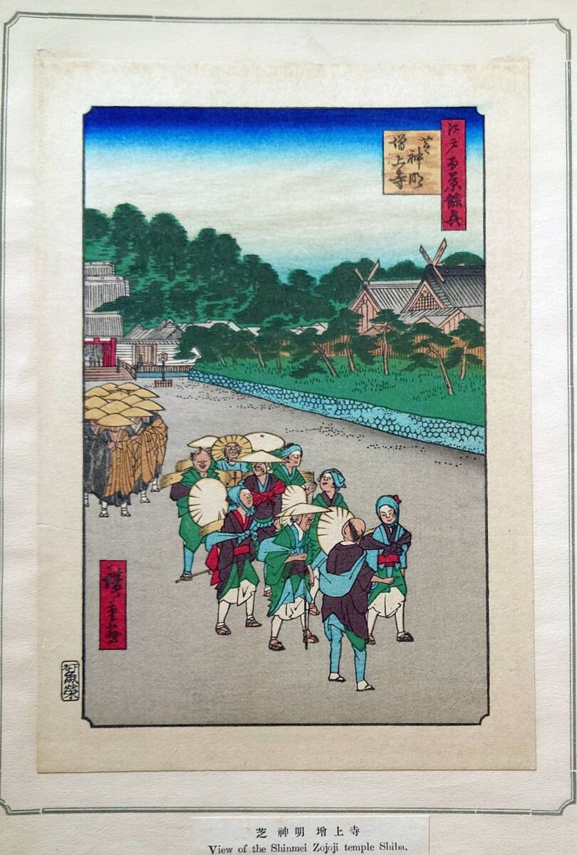 - f24080080〇名所江戸百景 彩色木版画 浮世絵 歌川広重 芝神明増上寺 複刻昭和年代〇和本古書古文書