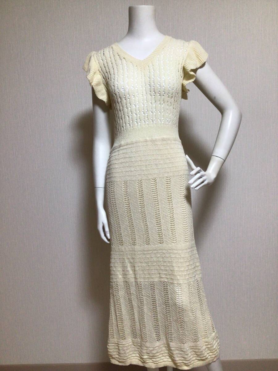 - M1219/美ライン ニットロングワンピース(ペチスカートインナー付)/アイボリー/フリー