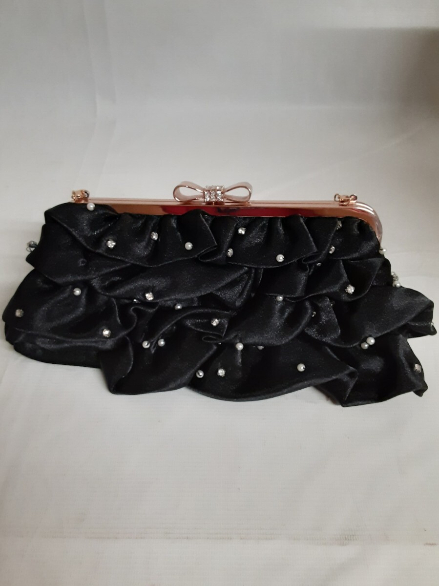 > ☆セシルマクビー☆パーティバッグ がま口フリル☆CECIL McBEE☆縦10cm×横18cm マチ6cm☆バッグの中にポケット1箇所あり☆ ブラック☆