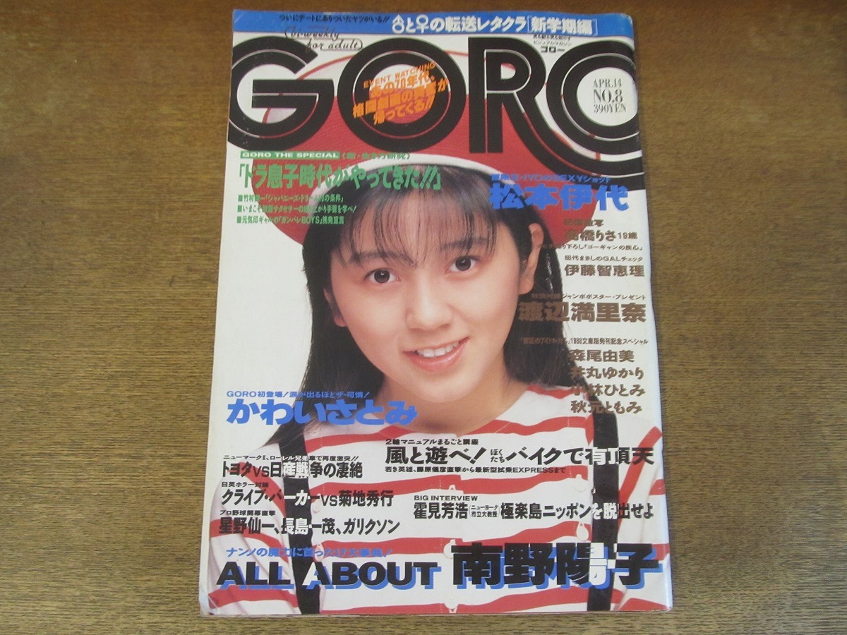 - 2408mn●GORO ゴロー 8/1988昭和63.4.14●表紙:渡辺満里奈/南野陽子/森尾由美/松本伊代カラーグラビア7p/伊藤智恵理×田代まさし/北岡夢子