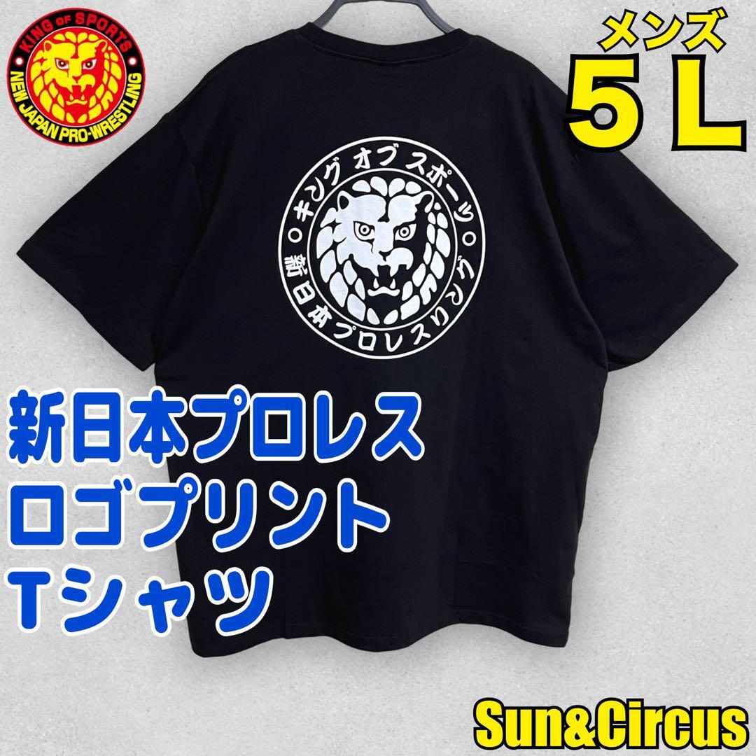 - メンズ大きいサイズ5L 新日本プロレス ロゴプリント 半袖Tシャツ 黒